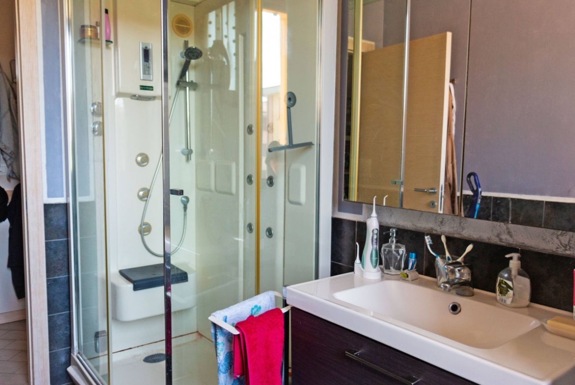 BOLOGNA BORGO PANIGALE – ADIACENZE 4 LOCALI – Via Angelo Masini 79 Zola Predosa – In gradevolissimo complesso residenziale del 2012 con ampio giardino interno, situato al confine con Lavino in posizione verde e molto tranquilla, vendesi ampio appartamento di mq. 127 posto al primo piano con ascensore. L’appartamento ha doppia esposizione ed è composto da: ingresso su ampia zona living con angolo cottura a vista (volendo separabile) e accesso a terrazzino abitabile fornito di tendone parasole, disimpegno notte arredabile, tre camere matrimoniali, due bagni finestrati, uno con vasca idro e l’altro con doccia idro. Pavimenti in gres chiaro nella zona giorno e parquet rovere nella zona notte. Porte interne laccate bianche, infissi in legno/vetro camera e zanzariere; scuretti esterni in legno Completa la proprietà un garage di mq 34 con comodo accesso da corridoio condominiale. Sono inoltre disponibili: un posto auto assegnato all’interno del vano condominiale ed altri posti auto liberi nell’area esterna del complesso residenziale. Impianti a norma e certificati; clima con pompa di calore e predisposizione per fibra in tutti gli ambienti. E’ presente un impianto di allarme volumetrico e perimetrale, La palazzina è dotata di struttura antisismica, cappotto termico, pannelli solari per la centrale termica e predisposizione per fotovoltaico. APE classe B. € 325.000*** NUOVO OPEN HOUSE SABATO 25 OTTOBRE DALLE ORE 10,00 ALLE 16,00 – SIETE TUTTI INVITATI *** VI ACCOGLIEREMO CON UN GUSTOSO BUFFET *** BOLOGNA BORGO PANIGALE – ADIACENZE 4 LOCALI – Via Angelo Masini 79 Zola Predosa – In gradevolissimo complesso residenziale del 2012 con ampio giardino interno, situato al confine con Lavino in posizione verde e molto tranquilla, vendesi ampio appartamento di mq. 127 posto al primo piano con ascensore. L’appartamento ha doppia esposizione ed è composto da: ingresso su ampia zona living con angolo cottura a vista (volendo separabile) e accesso a terrazzino abitabile fornito di tendone parasole, disimpegno notte arredabile, tre camere matrimoniali, due bagni finestrati, uno con vasca idro e l’altro con doccia idro. Pavimenti in gres chiaro nella zona giorno e parquet rovere nella zona notte. Porte interne laccate bianche, infissi in legno/vetro camera e zanzariere; scuretti esterni in legno Completa la proprietà un garage di mq 34 con comodo accesso da corridoio condominiale. Sono inoltre disponibili: un posto auto assegnato all’interno del vano condominiale ed altri posti auto liberi nell’area esterna del complesso residenziale. Impianti a norma e certificati; clima con pompa di calore e predisposizione per fibra in tutti gli ambienti. E’ presente un impianto di allarme volumetrico e perimetrale, La palazzina è dotata di struttura antisismica, cappotto termico, pannelli solari per la centrale termica e predisposizione per fotovoltaico. APE classe B. € 295.000 + garage € 30.000