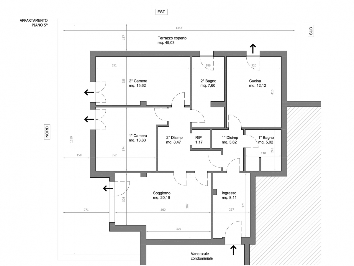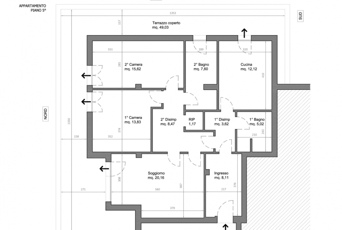 4/5 Locali Viale Quirico Filopanti interno – adiacenze Via Faustino Malaguti a pochissimi passi dal centro storico, vicino ai principali servizi e al Policlinico S. Orsola, proponiamo in vendita un silenziosissimo e luminoso appartamento con terrazza abitabile perimetrale, dagli affacci panoramici, posto al quinto ed ultimo piano con ascensore di un condominio signorile in pietra vista, posizionato in un contesto interno e riservato, lontano dal traffico. L’immobile e affacciato su due lati interni, ha una metratura di mq 120 circa oltre alla bellissima terrazza abitabile e perimetrale di mq 50. Attualmente presenta le finiture dell’epoca di costruzione ed è da ristrutturare. Grazie alle sue caratteristiche interne e all’assenza di muri portanti, essendo un appartamento all’interno di un edificio costruito in cemento armato e pilastri, offre ottime potenzialità per una redistribuzione degli spazi, potendo facilmente rendere gli ambienti più moderni, con la possibilità di ricavare una terza camera da letto. Attualmente l’immobile è composto da un ampio ingresso arredabile, una sala, una grande cucina abitabile, un primo disimpegno con armadiatura a muro, due ampi bagni (entrambi finestrati, uno con vasca e angolo lavanderia, l’altro con doccia), un secondo disimpegno, due camere da letto matrimoniali, un ripostiglio. Tutti gli ambienti della casa hanno l’accesso alla terrazza abitabile dalla quale è possibile godere della piacevolissima vista panoramica sui tetti della città. L’appartamento si completa di una cantina e un posto auto scoperto di esclusiva proprietà già incluso nel prezzo. E’ libero subito , ideale per chi cerca una soluzione con caratteristiche rare. Euro 465.000