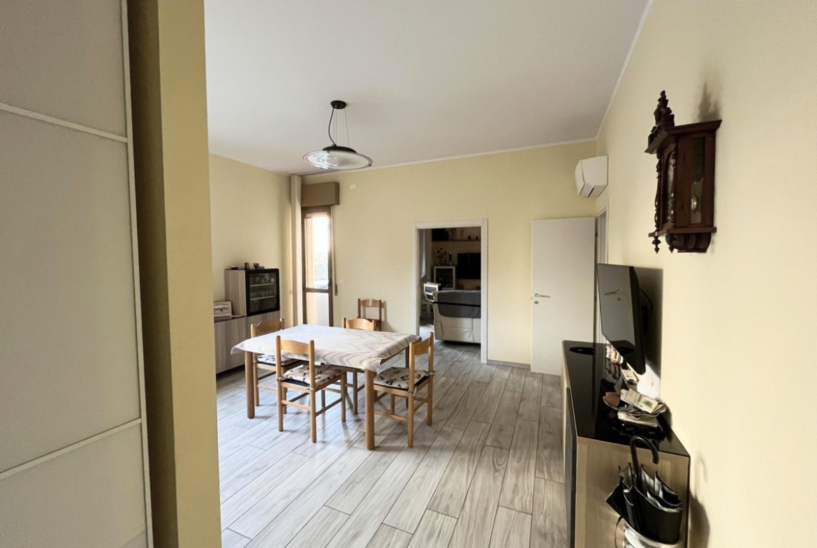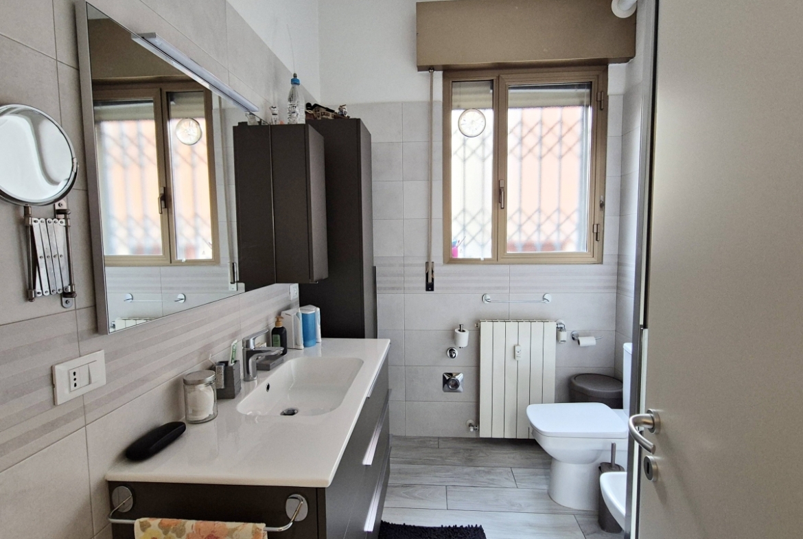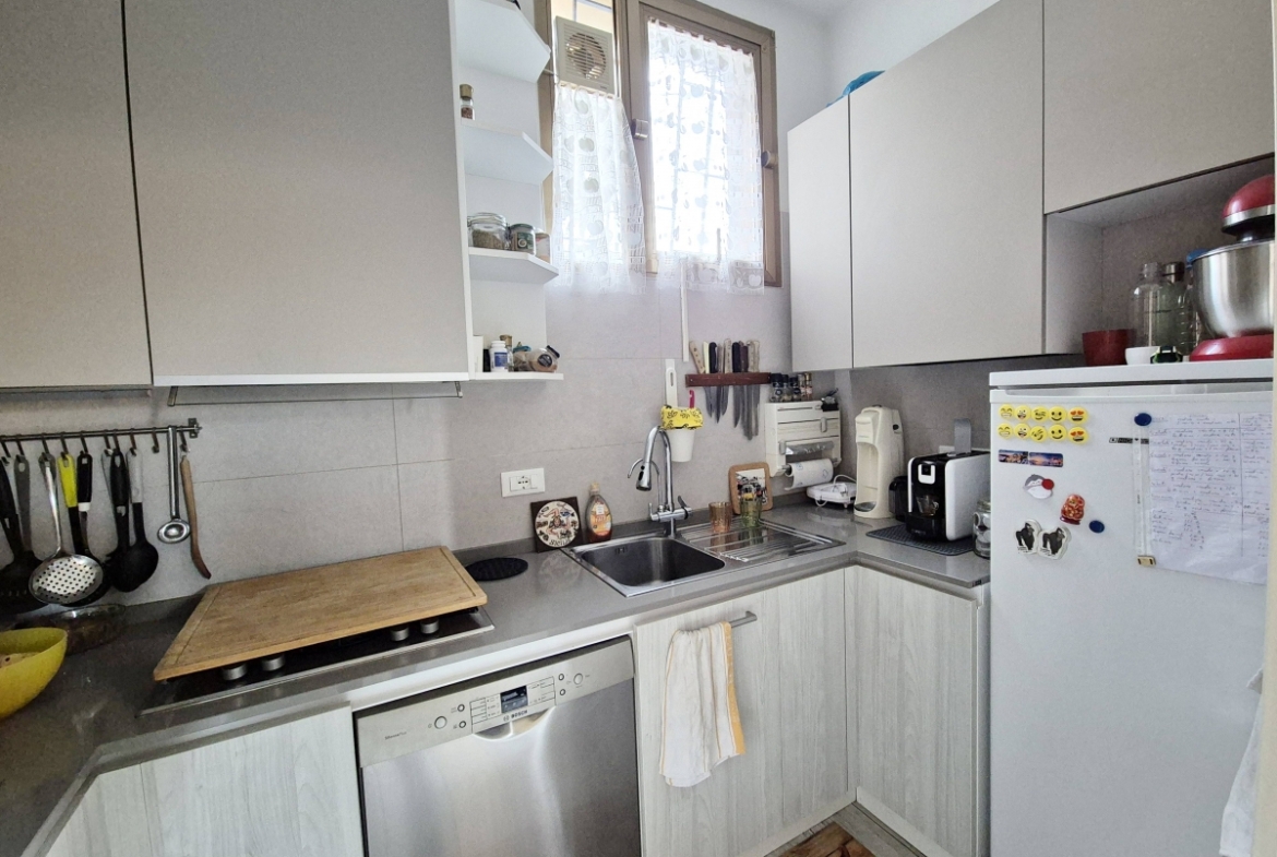 San donato zona San Donnino – Via Carlo Goldoni in posizione strategica e servitissima, proponiamo un appartamento inserito in una palazzina della fine degli anni ’50 del secolo scorso recentemente rinnovata in ogni sua parte, circondata da un gradevole giardino condominiale. L’immobile si trova al piano rialzato, è silenziosissimo, luminoso e affacciato su due lati opposti, di circa 100 mq, valorizzato da una ristrutturazione recentissima del 2021 che lo ha trasformato in una soluzione moderna e subito abitabile. L’appartamento è così disposto: ingresso con porta blindata su una zona living ampia e accogliente, portafinestra con accesso ad un gradevole balcone, cucinotto separato e arredato su misura. Una camera matrimoniale oggi sfruttata come soggiorno, con doppio ingresso (sia dalla zona living che dalla zona notte), conferisce all’appartamento una versatilità vantaggiosa a seconda delle esigenze. La zona presenta una seconda camera matrimoniale spaziosa, una terza camera singola e un bagno finestrato di ampia metratura, anch’esso completamente rinnovato. Buone le finiture: i pavimenti sono in grès effetto legno chiaro nella zona giorno e parquet nella zona notte, gli infissi in alluminio anodizzato con vetrocamera, le porte laccate bianche, l’impianto elettrico certificato ed è presente l’aria condizionata. Il riscaldamento è centralizzato con caldaia condominiale nuova in fase di sostituzione. A rendere questa soluzione ancora più completa, sono incluse nel prezzo due autorimesse di proprietà, con punto acqua e accesso diretto dall’interno del condominio, pratiche e funzionali anche per chi utilizza bici, moto o necessita di ulteriore spazio di deposito/lavanderia. Questa casa si distingue per la comodità della posizione, la tranquillità del contesto verde e il vantaggio di acquistare una soluzione già ristrutturata sia all’esterno che all’interno, caratteristiche che la rendono una proposta solida e pronta per essere vissuta fin da subito. Libera a rogito, perfetta per chi cerca comfort, modernità e un investimento intelligente sulla zona che sta crescendo. Euro 370.000