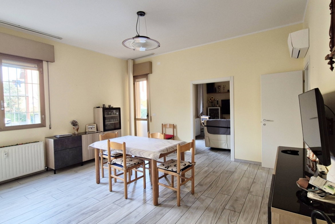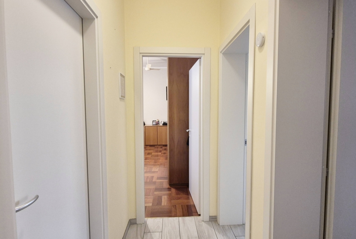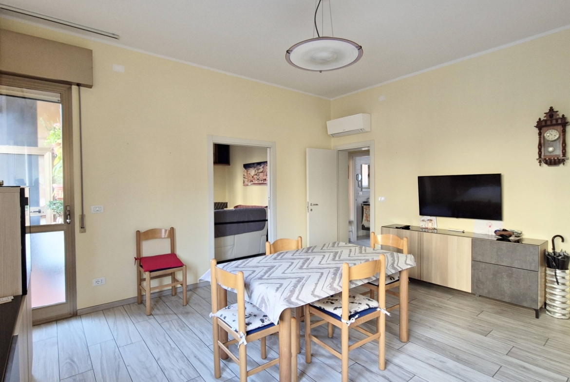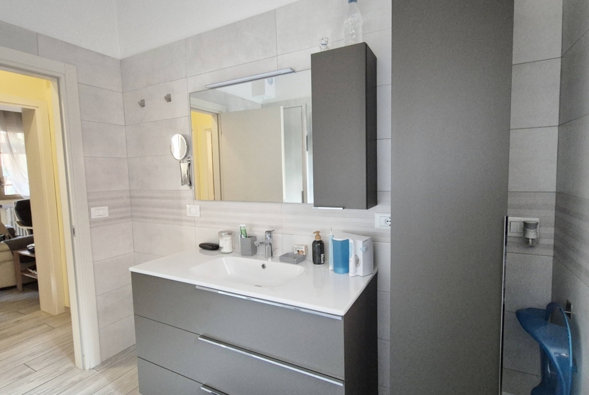 San donato zona San Donnino – Via Carlo Goldoni in posizione strategica e servitissima, proponiamo un appartamento inserito in una palazzina della fine degli anni ’50 del secolo scorso recentemente rinnovata in ogni sua parte, circondata da un gradevole giardino condominiale. L’immobile si trova al piano rialzato, è silenziosissimo, luminoso e affacciato su due lati opposti, di circa 100 mq, valorizzato da una ristrutturazione recentissima del 2021 che lo ha trasformato in una soluzione moderna e subito abitabile. L’appartamento è così disposto: ingresso con porta blindata su una zona living ampia e accogliente, portafinestra con accesso ad un gradevole balcone, cucinotto separato e arredato su misura. Una camera matrimoniale oggi sfruttata come soggiorno, con doppio ingresso (sia dalla zona living che dalla zona notte), conferisce all’appartamento una versatilità vantaggiosa a seconda delle esigenze. La zona presenta una seconda camera matrimoniale spaziosa, una terza camera singola e un bagno finestrato di ampia metratura, anch’esso completamente rinnovato. Buone le finiture: i pavimenti sono in grès effetto legno chiaro nella zona giorno e parquet nella zona notte, gli infissi in alluminio anodizzato con vetrocamera, le porte laccate bianche, l’impianto elettrico certificato ed è presente l’aria condizionata. Il riscaldamento è centralizzato con caldaia condominiale nuova in fase di sostituzione. A rendere questa soluzione ancora più completa, sono incluse nel prezzo due autorimesse di proprietà, con punto acqua e accesso diretto dall’interno del condominio, pratiche e funzionali anche per chi utilizza bici, moto o necessita di ulteriore spazio di deposito/lavanderia. Questa casa si distingue per la comodità della posizione, la tranquillità del contesto verde e il vantaggio di acquistare una soluzione già ristrutturata sia all’esterno che all’interno, caratteristiche che la rendono una proposta solida e pronta per essere vissuta fin da subito. Libera a rogito, perfetta per chi cerca comfort, modernità e un investimento intelligente sulla zona che sta crescendo. Euro 370.000