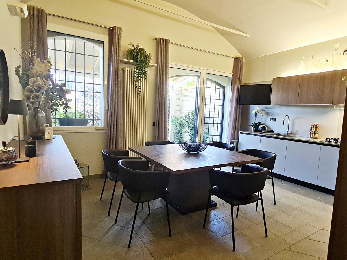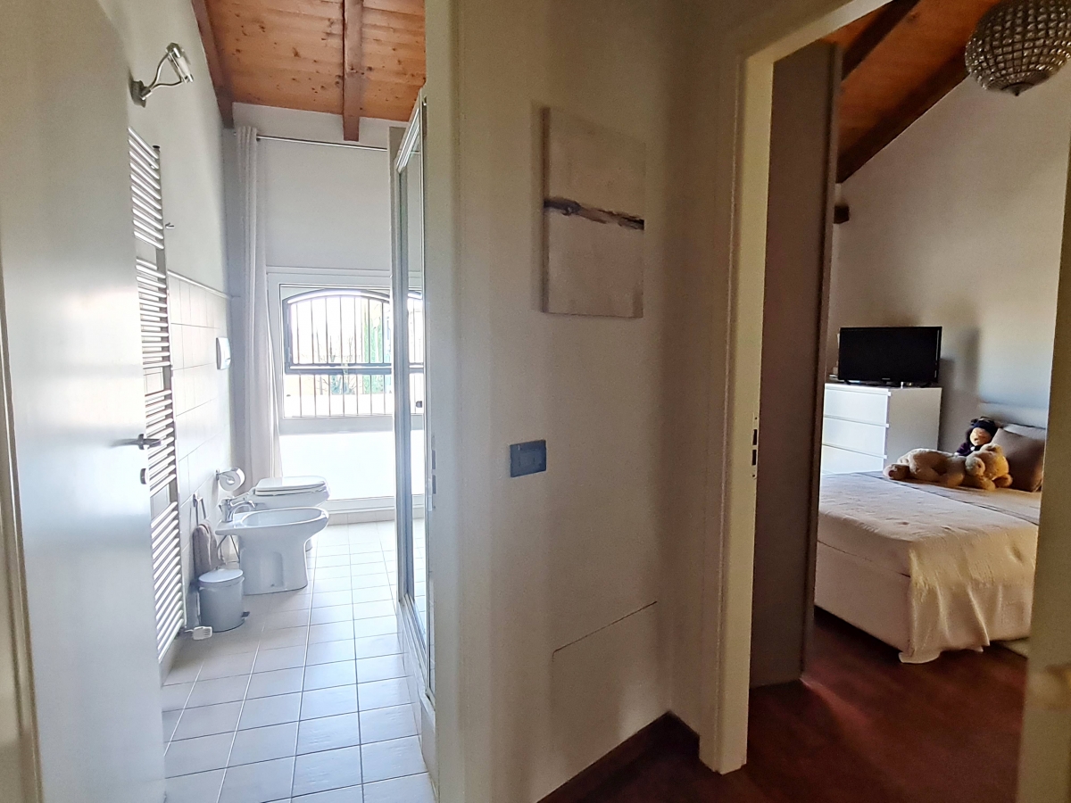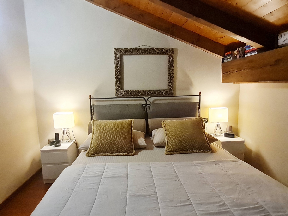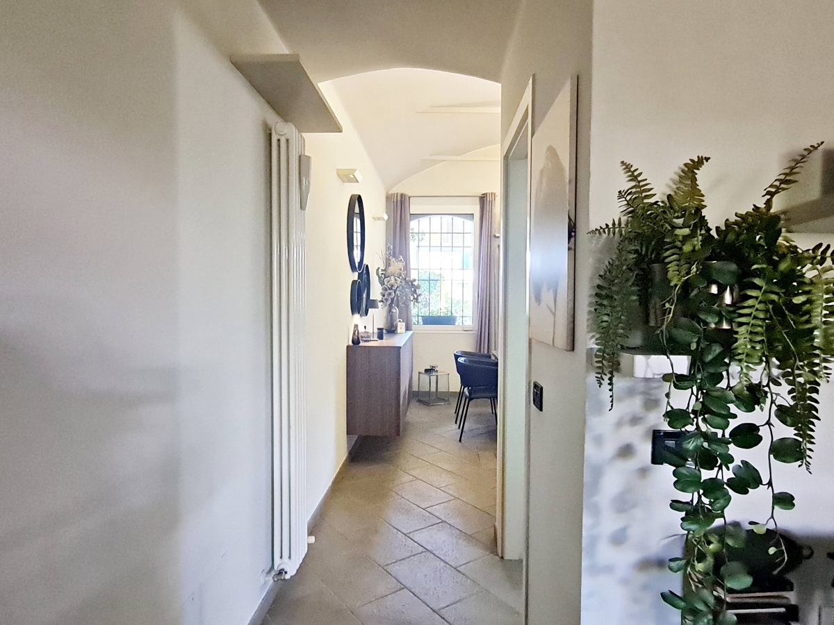 San Lazzaro di Savena – località Russo Tra la località Borgatella e la località Cicogna di San Lazzaro di Savena, a pochi minuti da tutti i servizi, nella tranquillità e nel verde, disponiamo di bellissima porzione di casa colonica con ingresso indipendente, posta su due piani, per mq 142, oltre a due pergolati e giardino privato posti sia sul fronte che retro di circa mq 250 totali. L’immobile è stato oggetto di totale recupero e totalmente ristrutturato alcuni anni fa con ottime finiture, per questo si presenta perfettamente tenuto e abitabile fin da subito. Attualmente così composto: Al piano terra ingresso diretto dal giardino con pergolato su ampia sala di rappresentanza con camino, disimpegno, bagno di servizio con angolo lavanderia, grande cucina abitabile con accesso al pergolato e al giardino sul retro. Il primo piano è collegato da una comoda scala in muratura dove si accede ad un disimpegno che porta ad un bagno finestrato con doccia, ad una camera da letto matrimoniale e ad una camera padronale su due livelli con cabina armadio attrezzata e bagno finestrato con vasca al primo livello, e camera da letto con altro vano accessorio al secondo livello. Il primo piano è caratterizzato dalle ampie altezze e volumi e dal soffitto in legno. Il giardino è perfettamente tenuto e arredato, include una casetta per il ricovero degli attrezzi, l’impianto di illuminazione e d’irrigazione. Al giardino fronte si accede da un cancello pedonale e da un cancello carraio automatico con possibilità di parcheggiare due posti auto. I pergolati sono stati recentemente pavimentati e attrezzati e sono dotati di frangisole in legno. Tutti gli scuri sono stati appena ricondizionati con garanzia decennale. Entrambi i giardini godono di un’ottima privacy dove è possibile trascorrere piacevoli giornate e ricevere ospiti. Le finiture interne sono di ottimo livello: Infissi di ottima fattura in alluminio bianchi con vetro camera, la porta d’ingresso e in vetro antisfondamento, inferriate ovunque, zanzariere, porte interne di colore bianco laccate, pavimenti in gres effetto pietra al piano terra e parquet al primo piano, aria condizionata, impianto d’allarme, termosifoni in alluminio tubolari bianchi e termo arredo nei bagni, impianti certificati. Durante la ristrutturazione, al piano terra è stato creato una camera d’aria perimetrale al piano terra per evitare la risalita dell’umidità. Sono disponibili altri due posti auto esclusivi all’interno dell’area comune alle altre unità immobiliari. L’immobile e libero subito e include gli arredi. € 378000