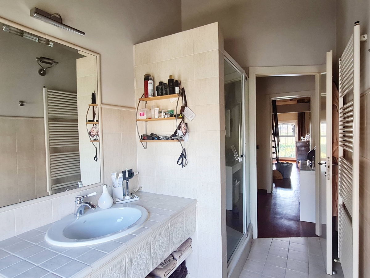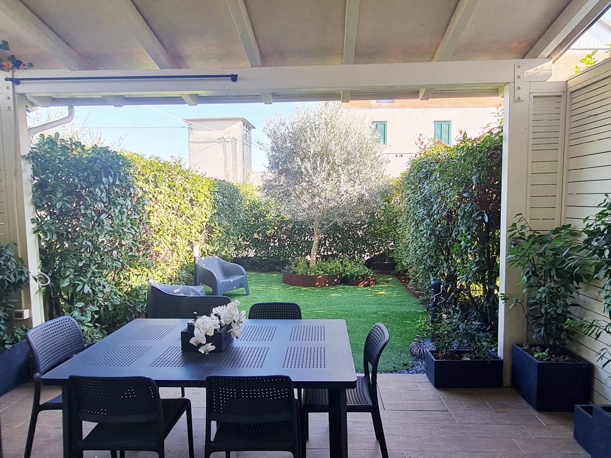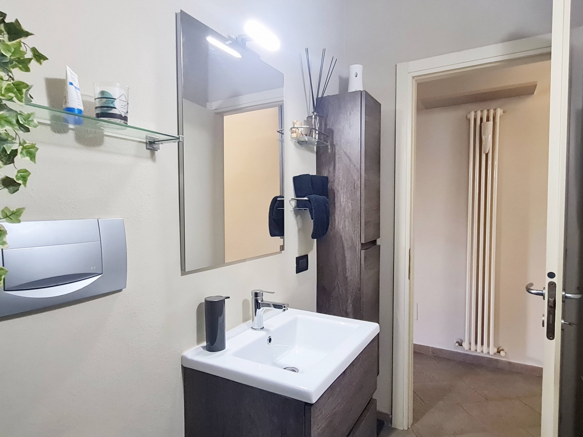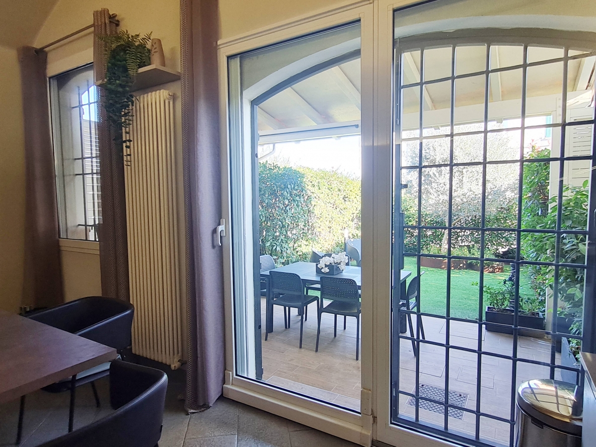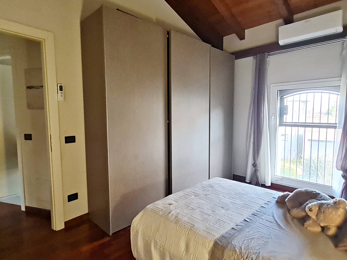 San Lazzaro di Savena – località Russo Tra la località Borgatella e la località Cicogna di San Lazzaro di Savena, a pochi minuti da tutti i servizi, nella tranquillità e nel verde, disponiamo di bellissima porzione di casa colonica con ingresso indipendente, posta su due piani, per mq 142, oltre a due pergolati e giardino privato posti sia sul fronte che retro di circa mq 250 totali. L’immobile è stato oggetto di totale recupero e totalmente ristrutturato alcuni anni fa con ottime finiture, per questo si presenta perfettamente tenuto e abitabile fin da subito. Attualmente così composto: Al piano terra ingresso diretto dal giardino con pergolato su ampia sala di rappresentanza con camino, disimpegno, bagno di servizio con angolo lavanderia, grande cucina abitabile con accesso al pergolato e al giardino sul retro. Il primo piano è collegato da una comoda scala in muratura dove si accede ad un disimpegno che porta ad un bagno finestrato con doccia, ad una camera da letto matrimoniale e ad una camera padronale su due livelli con cabina armadio attrezzata e bagno finestrato con vasca al primo livello, e camera da letto con altro vano accessorio al secondo livello. Il primo piano è caratterizzato dalle ampie altezze e volumi e dal soffitto in legno. Il giardino è perfettamente tenuto e arredato, include una casetta per il ricovero degli attrezzi, l’impianto di illuminazione e d’irrigazione. Al giardino fronte si accede da un cancello pedonale e da un cancello carraio automatico con possibilità di parcheggiare due posti auto. I pergolati sono stati recentemente pavimentati e attrezzati e sono dotati di frangisole in legno. Tutti gli scuri sono stati appena ricondizionati con garanzia decennale. Entrambi i giardini godono di un’ottima privacy dove è possibile trascorrere piacevoli giornate e ricevere ospiti. Le finiture interne sono di ottimo livello: Infissi di ottima fattura in alluminio bianchi con vetro camera, la porta d’ingresso e in vetro antisfondamento, inferriate ovunque, zanzariere, porte interne di colore bianco laccate, pavimenti in gres effetto pietra al piano terra e parquet al primo piano, aria condizionata, impianto d’allarme, termosifoni in alluminio tubolari bianchi e termo arredo nei bagni, impianti certificati. Durante la ristrutturazione, al piano terra è stato creato una camera d’aria perimetrale al piano terra per evitare la risalita dell’umidità. Sono disponibili altri due posti auto esclusivi all’interno dell’area comune alle altre unità immobiliari. L’immobile e libero subito e include gli arredi. € 378000