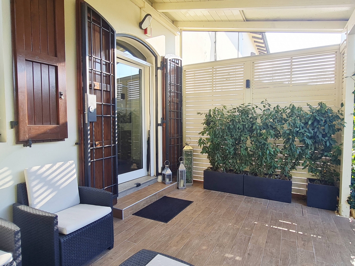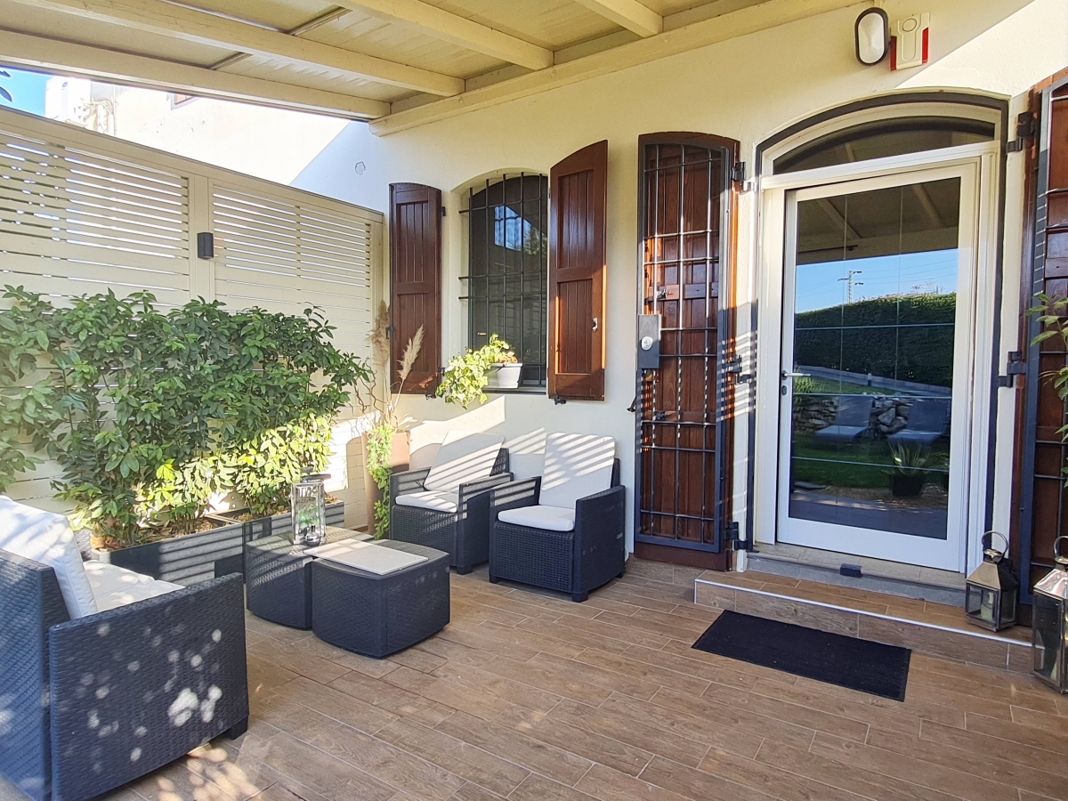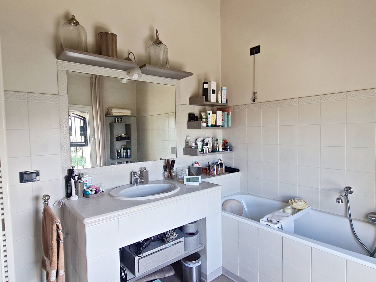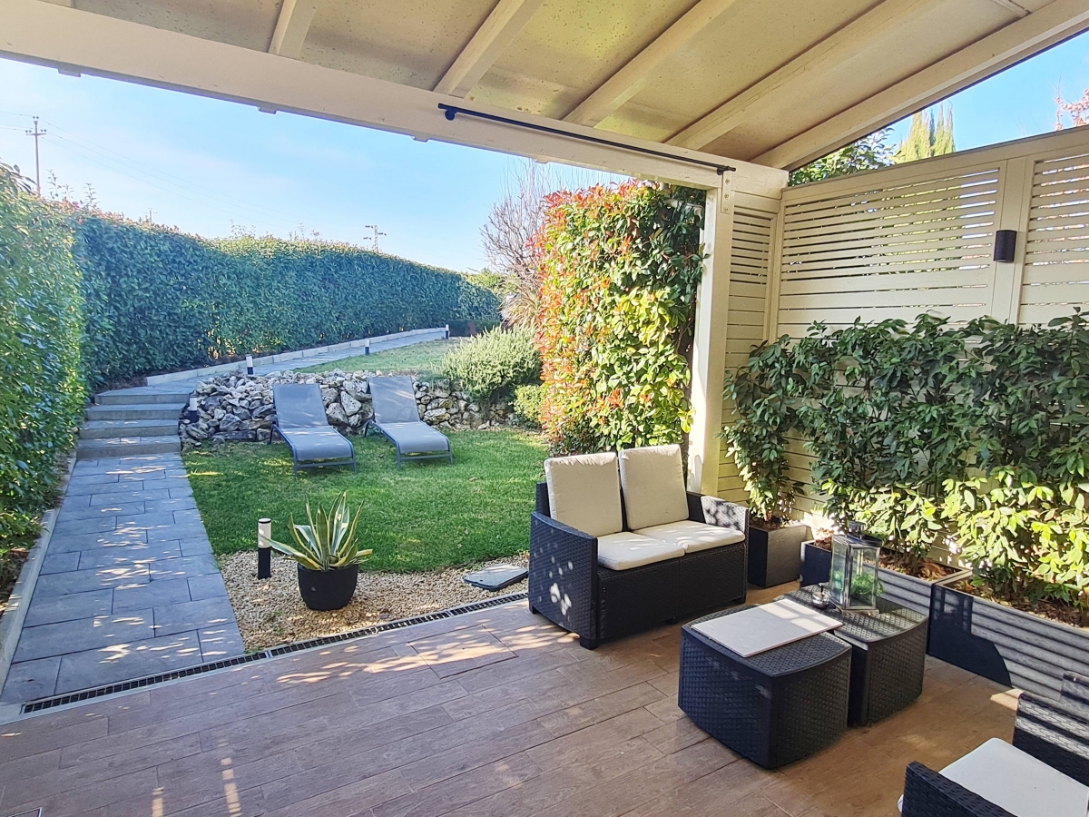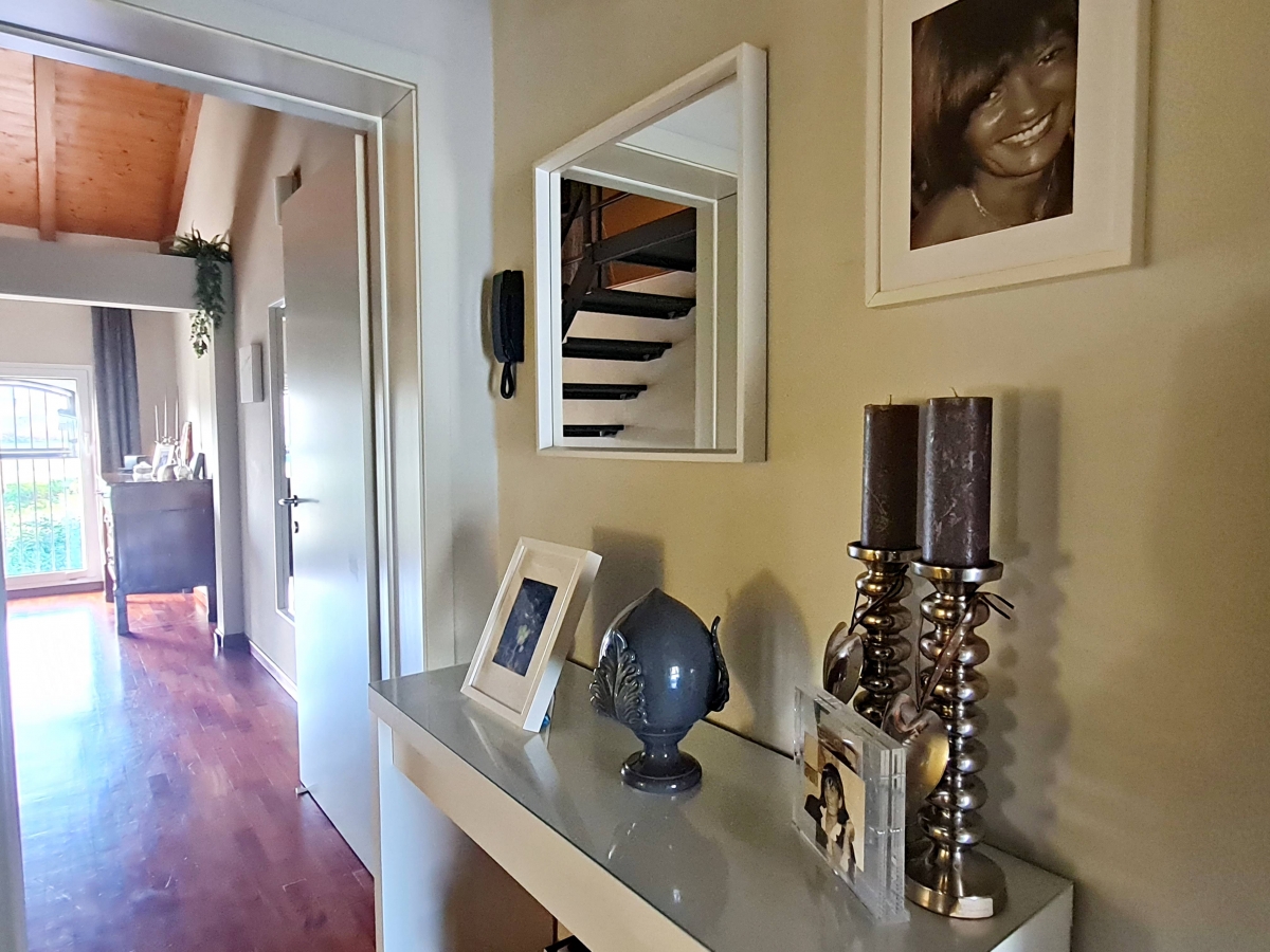 San Lazzaro di Savena – località Russo Tra la località Borgatella e la località Cicogna di San Lazzaro di Savena, a pochi minuti da tutti i servizi, nella tranquillità e nel verde, disponiamo di bellissima porzione di casa colonica con ingresso indipendente, posta su due piani, per mq 142, oltre a due pergolati e giardino privato posti sia sul fronte che retro di circa mq 250 totali. L’immobile è stato oggetto di totale recupero e totalmente ristrutturato alcuni anni fa con ottime finiture, per questo si presenta perfettamente tenuto e abitabile fin da subito. Attualmente così composto: Al piano terra ingresso diretto dal giardino con pergolato su ampia sala di rappresentanza con camino, disimpegno, bagno di servizio con angolo lavanderia, grande cucina abitabile con accesso al pergolato e al giardino sul retro. Il primo piano è collegato da una comoda scala in muratura dove si accede ad un disimpegno che porta ad un bagno finestrato con doccia, ad una camera da letto matrimoniale e ad una camera padronale su due livelli con cabina armadio attrezzata e bagno finestrato con vasca al primo livello, e camera da letto con altro vano accessorio al secondo livello. Il primo piano è caratterizzato dalle ampie altezze e volumi e dal soffitto in legno. Il giardino è perfettamente tenuto e arredato, include una casetta per il ricovero degli attrezzi, l’impianto di illuminazione e d’irrigazione. Al giardino fronte si accede da un cancello pedonale e da un cancello carraio automatico con possibilità di parcheggiare due posti auto. I pergolati sono stati recentemente pavimentati e attrezzati e sono dotati di frangisole in legno. Tutti gli scuri sono stati appena ricondizionati con garanzia decennale. Entrambi i giardini godono di un’ottima privacy dove è possibile trascorrere piacevoli giornate e ricevere ospiti. Le finiture interne sono di ottimo livello: Infissi di ottima fattura in alluminio bianchi con vetro camera, la porta d’ingresso e in vetro antisfondamento, inferriate ovunque, zanzariere, porte interne di colore bianco laccate, pavimenti in gres effetto pietra al piano terra e parquet al primo piano, aria condizionata, impianto d’allarme, termosifoni in alluminio tubolari bianchi e termo arredo nei bagni, impianti certificati. Durante la ristrutturazione, al piano terra è stato creato una camera d’aria perimetrale al piano terra per evitare la risalita dell’umidità. Sono disponibili altri due posti auto esclusivi all’interno dell’area comune alle altre unità immobiliari. L’immobile e libero subito e include gli arredi. € 378000